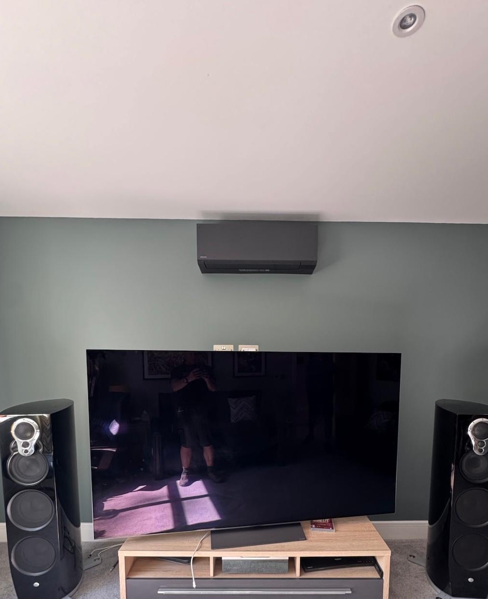 The Toshiba Shorai, which comes in white and black, was an obvious choice which could both blend in and stand out with the black colour scheme surrounding the home entertainment systems. The almost silent fan operation and the Wi-Fi connectivity were equally attractive to our client!